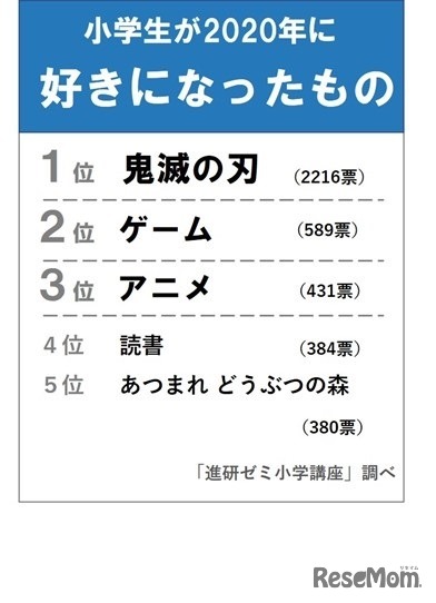 画像出典:ベネッセホールディングス 小学生が2020年に好きになったもの