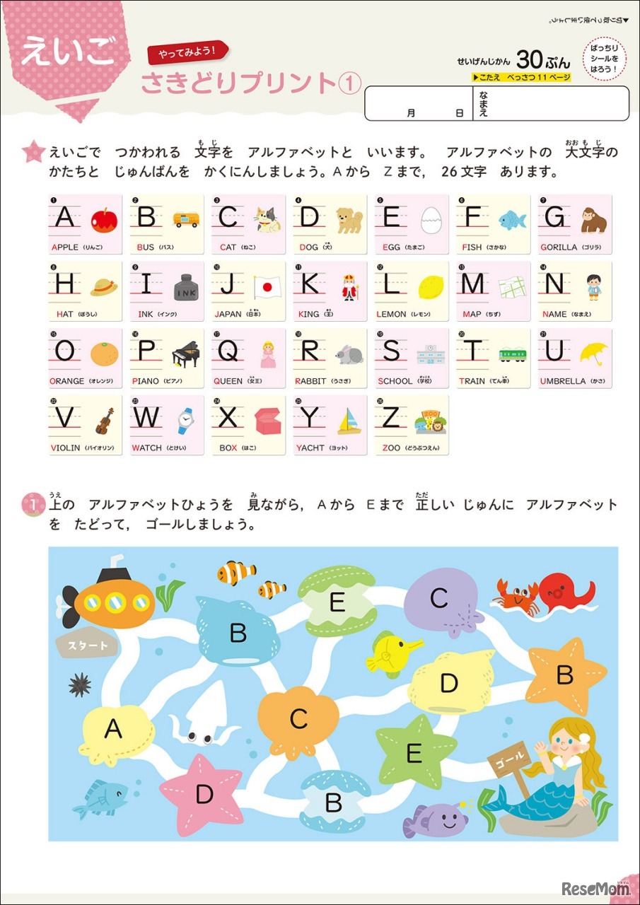 画像出典:学研プラス 小1・2の英語・理科・社会は、楽しく解ける「さきどりプリント」