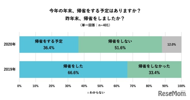 アルバムが簡単に作れるアプリ「ALBUS(アルバス)」は、関東地方以外に実家がある東京・神奈川在住の乳幼児の子どもを持つママを対象に「今年の年末帰省」に関する調査を実施。36.4%が実家へ帰省を予定し、51.6%が「帰省はしない」と回答した。