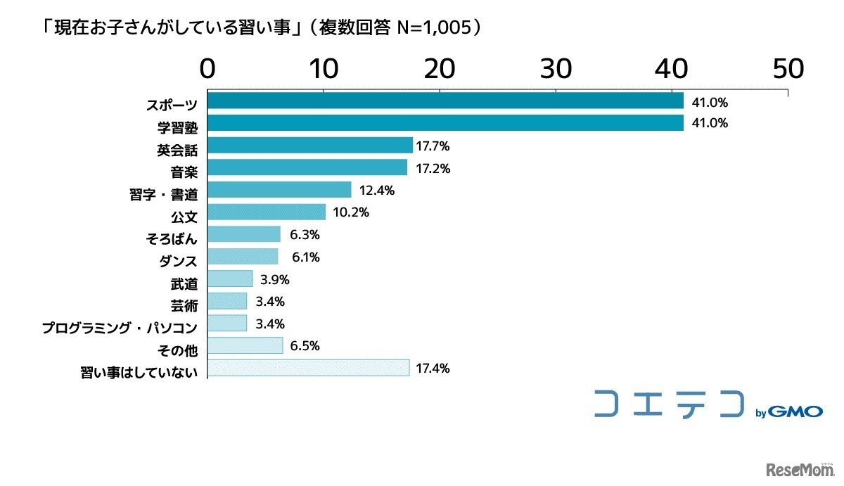 画像出典:GMOインターネットグループ 現在子どもがしている習い事