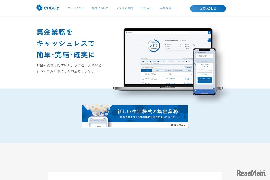 集金業務のキャッシュレス化を実現するFintech×SaaSプラットフォーム「enpay(エンペイ)」を提供するエンペイは2020年12月8日、コドモンの提供するICTシステム「CoDMON(コドモン)」との連携を開始することを発表した。