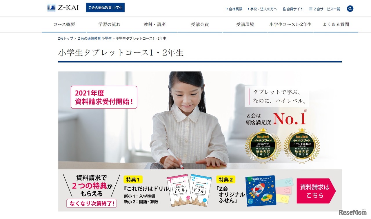 Z会は、「Z会の通信教育」において、2021年4月より「小学生タブレットコース2年生」を開講する。学習のスタートから丸つけ、問題の解説まで子ども1人で学習を完結できるので、子ども自身が能動的に学ぶ姿勢が身に付くという。