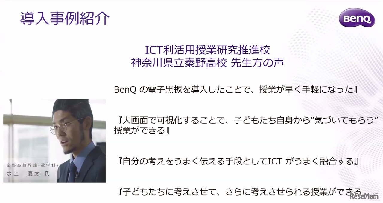 2020年11月22日「未来の先生フォーラム2020」内で、BenQのオンラインセミナー「先生のお悩み解決。~従来の授業をさらに光らせるICT電子黒板の活用法~」が開催された。登壇者は、ベンキュージャパンの横山真光氏と長岡愛氏。当日のようすをレポートする。