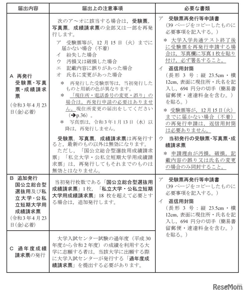 画像出典:大学入試センター 受験票等の再発行、成績請求書の追加発行、過年度成績請求票の発行