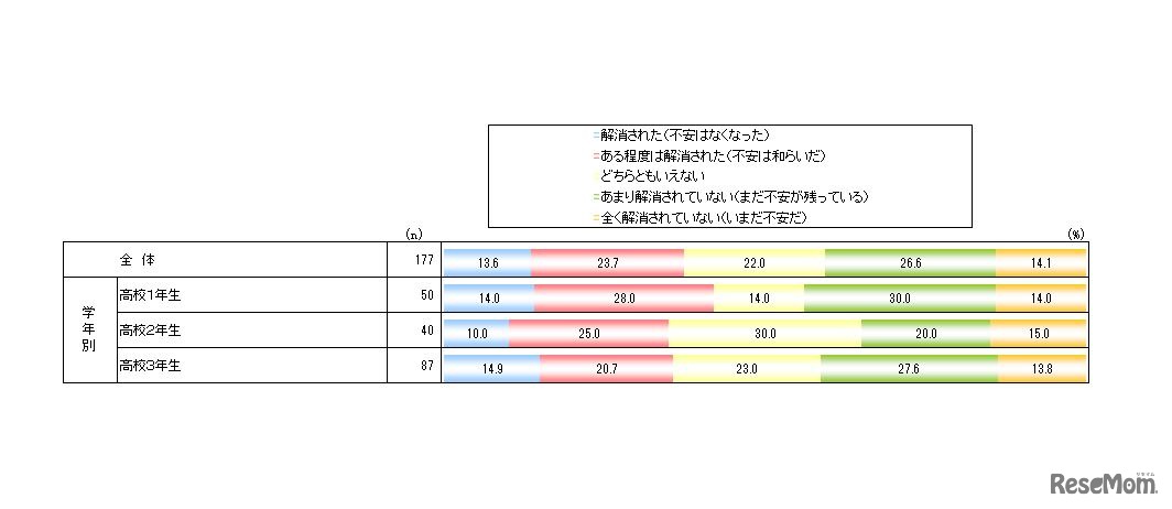 学校再開後の不安の解消具合(地域や学校ごとの対応のバラつきによる学習格差)