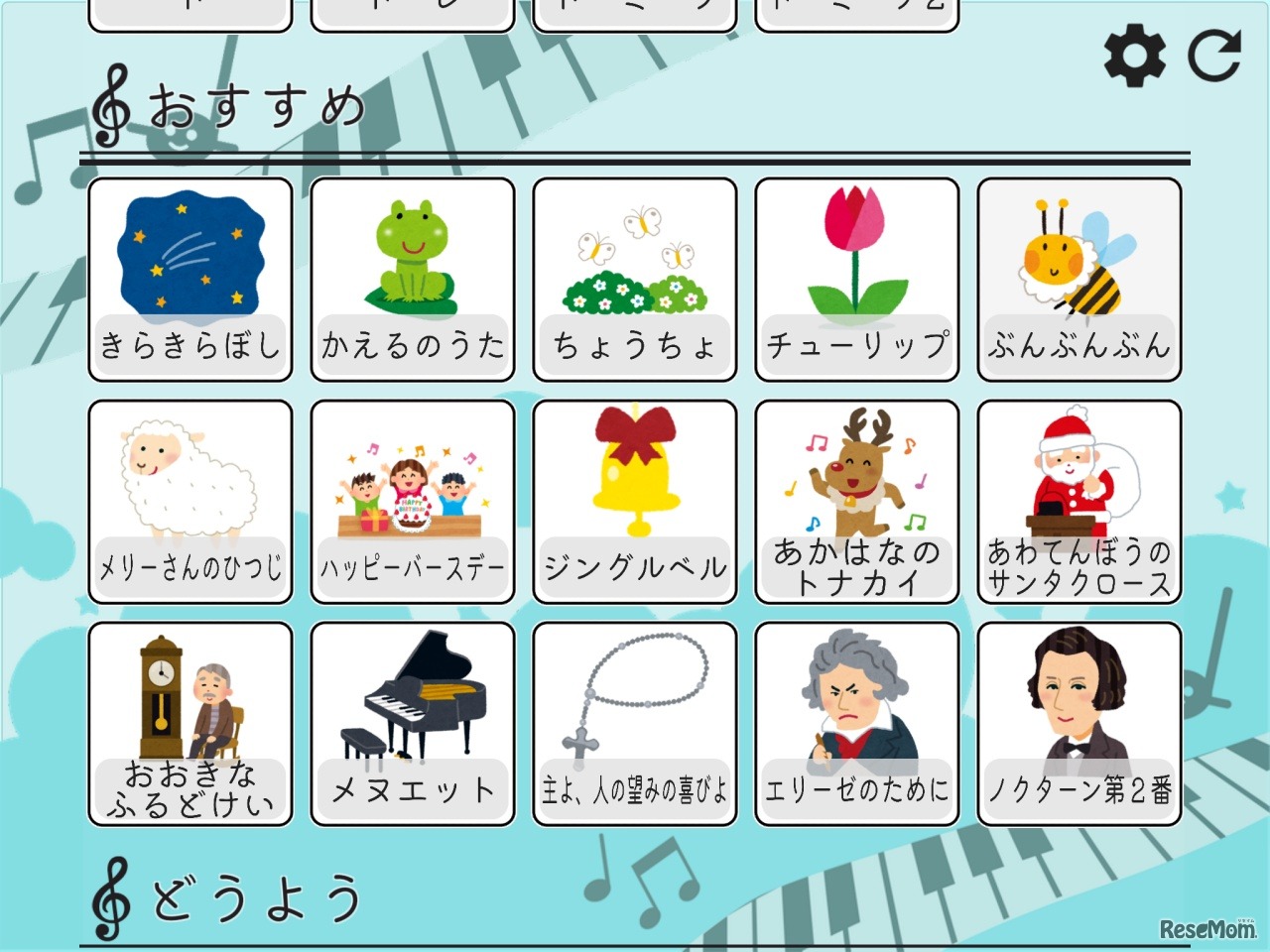 「ドレミのおけいこ」曲選択画面(イメージ)