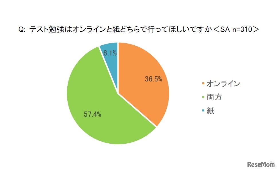 テスト勉強はオンラインと紙どちらで行ってほしいか