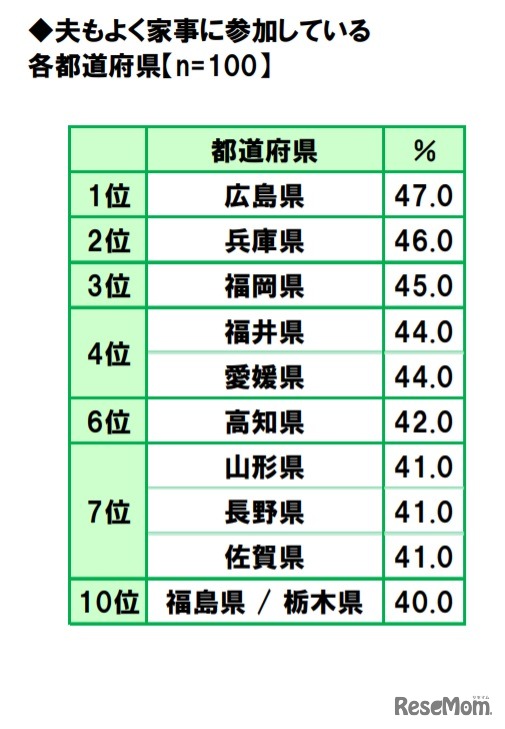 画像出典:ソニー生命保険「47都道府県別 生活意識調査2020」 夫もよく家事に参加している