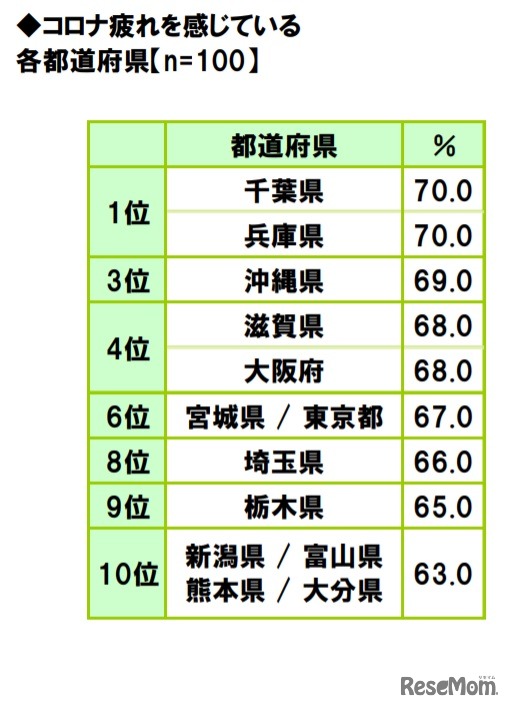 画像出典:ソニー生命保険「47都道府県別 生活意識調査2020」 コロナ疲れを感じている