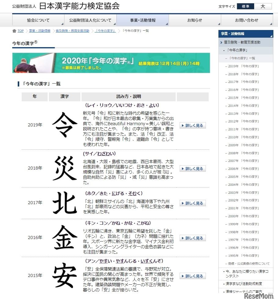 日本漢字能力検定協会は2020年12月14日、今年の世相を漢字一字で表現する年末の風物詩「今年の漢字」を発表した。京都・清水寺の森清範貫主が揮毫した漢字一字は「密」。