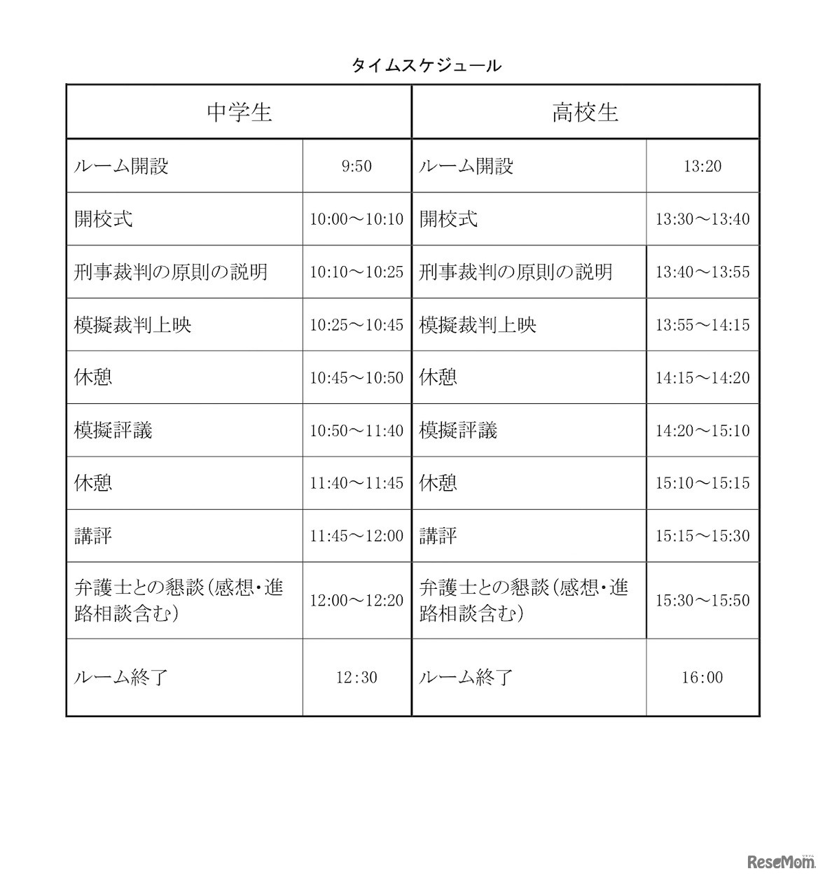 第10回 ジュニアロースクール「君も裁判員!」タイムスケジュール
