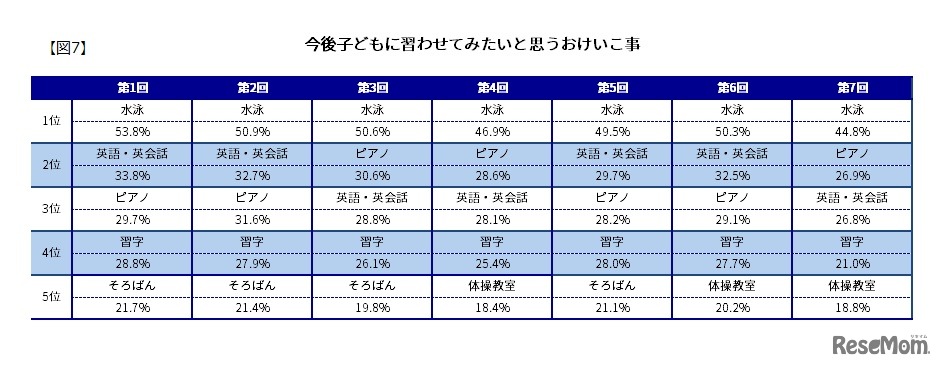 画像出典:アクサダイレクト生命 今後子どもに習わせてみたいと思うおけいこ事