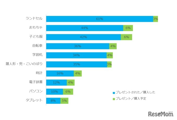 子どもにプレゼントした(予定含む)アイテム