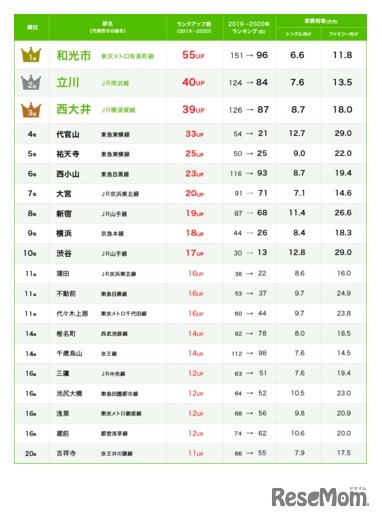 リクルート住まいカンパニーは2020年12月15日、1都3県(東京都・神奈川県・埼玉県・千葉県)の1,519駅を対象とした「SUUMO 閲覧数が急上昇した街ランキング2020」を発表した。1位は、東京メトロ有楽町線と副都心線の始発駅である和光市駅となった。