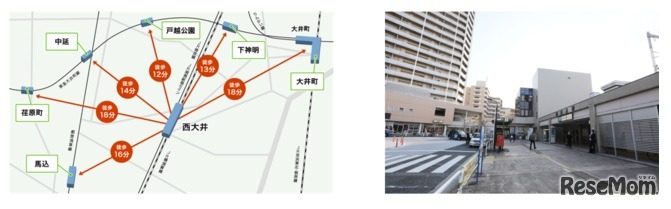 画像出典:リクルート住まいカンパニー 徒歩分数はgoogleマップの最短時間を記載/西大井駅と駅前のロータリー