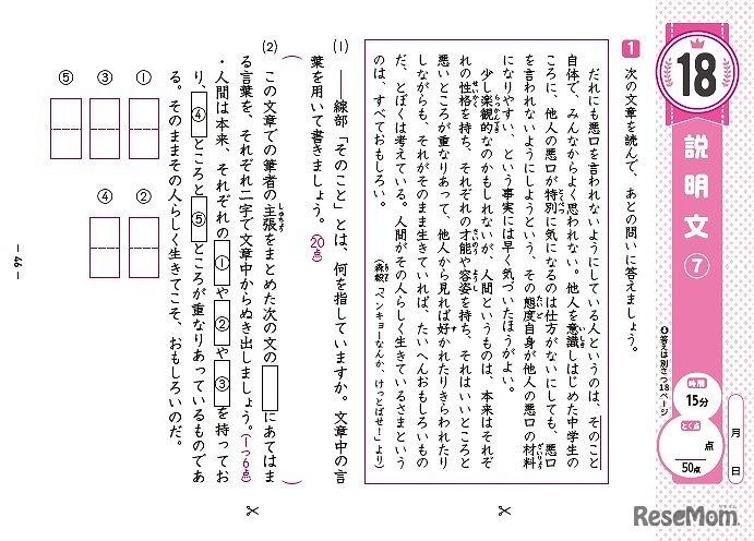 画像出典:増進堂・受験研究社 国語 表面の読解問題(小4の紙面より)