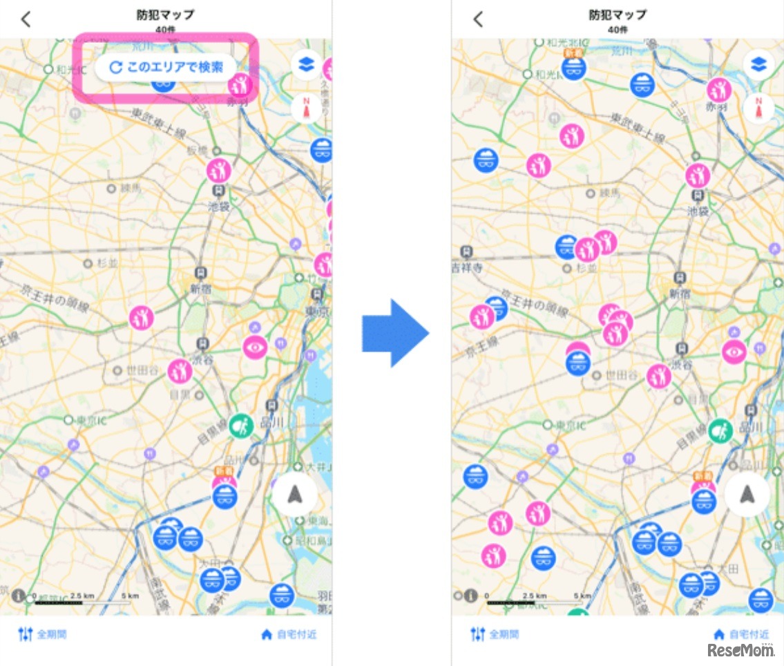 地図を動かしたら再読込をタップ