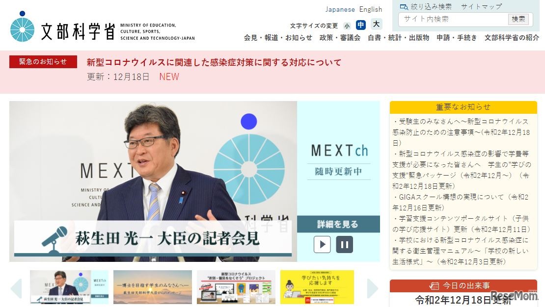 文部科学省と厚生労働省は2020年12月18日、「受験生のみなさんへ~新型コロナウイルス感染防止のための注事事項~」と題した文書を発表した。「自主検温を行い、体調を把握する」など、普段の生活や外出時に心掛けてほしい項目を受験生向けにまとめ、注意喚起している。
