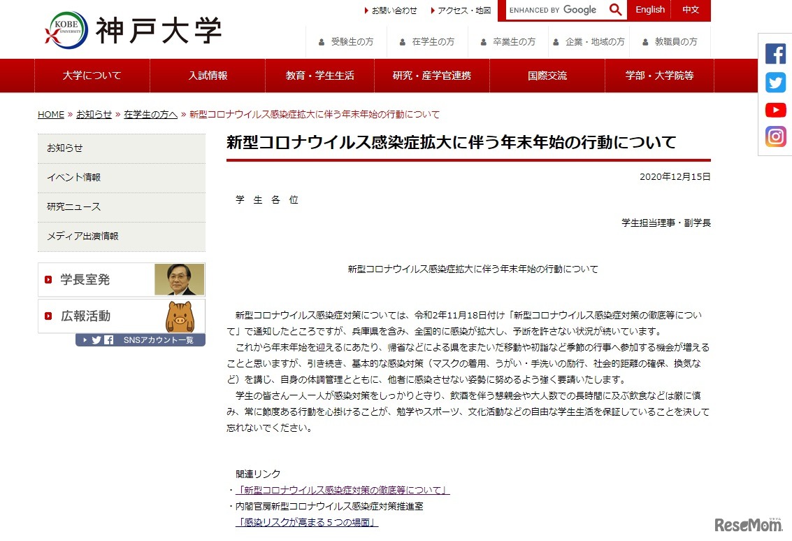 年末年始の行動は慎重に…東北大・東大など学生に呼び掛け 3枚目の写真・画像