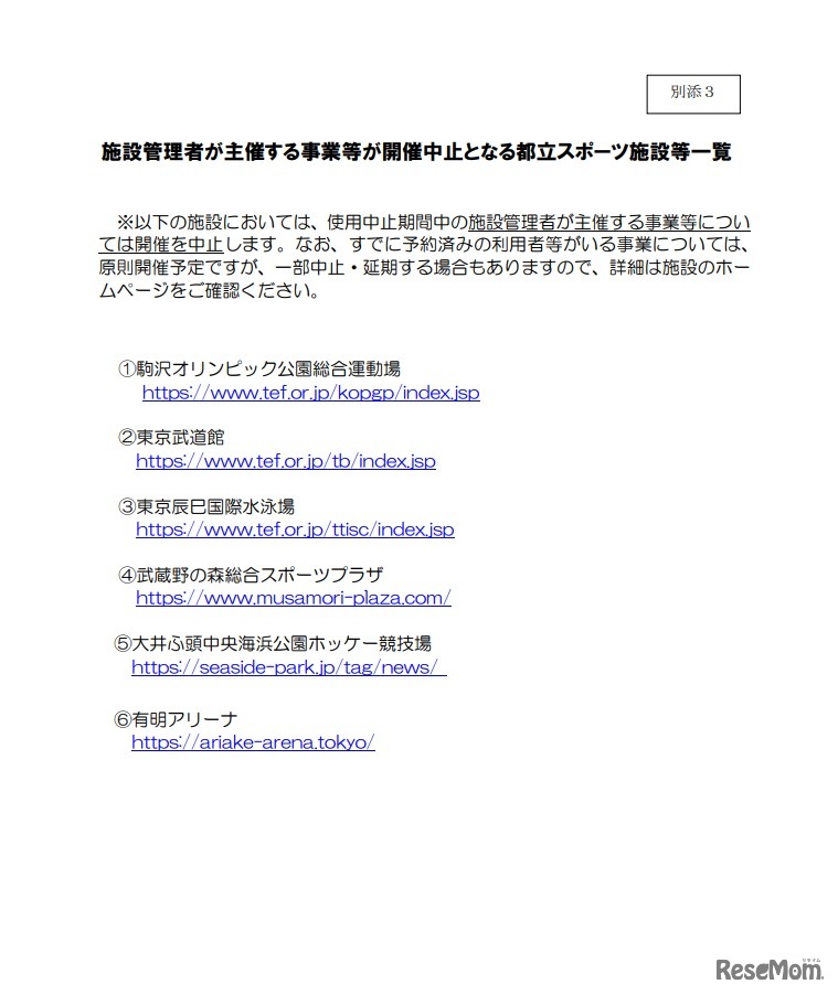 東京都は2020年12月22日、都立スポーツ施設等における一部利用中止等について発表した。年末・年始期間における新型コロナウイルス拡大防止の対応で、使用中止は2021年1月11日まで。