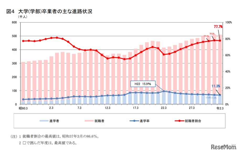 高校(全日制・定時制)、中等教育学校後期課程卒業者(過年度卒を含む)の大学・短大への進学率は過去最多となる58.6%であることが、文部科学省が2020年12月25日に公表した2020年度(令和2年度)学校基本調査(確定値)より明らかになった。