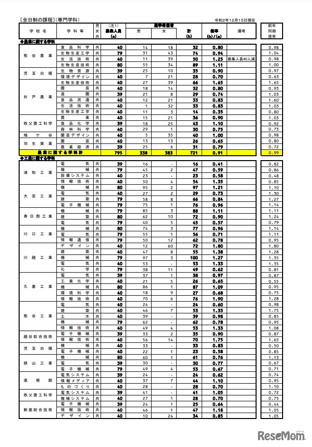 【高校受験2021】埼玉県進路希望状況調査・倍率(12/15現在)大宮(理数)2.18倍 5枚目の写真・画像