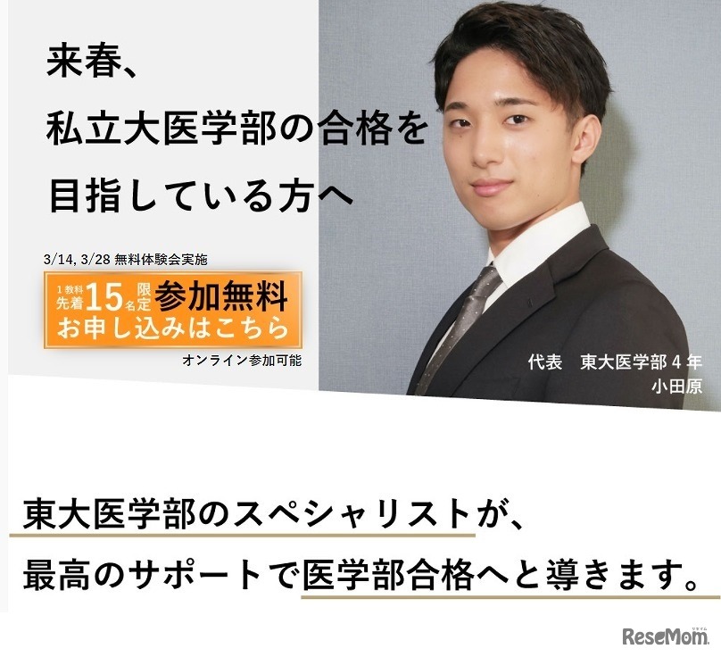 Medical License Preparatory schoolは2021年2月24日、現役東大医学部生が24時間体制で医学部受験合格をサポートする医学部予備校「S3 Medical(以下「S3」)」が発足することを発表した。3月14日と28日には、無料体験会を実施する。