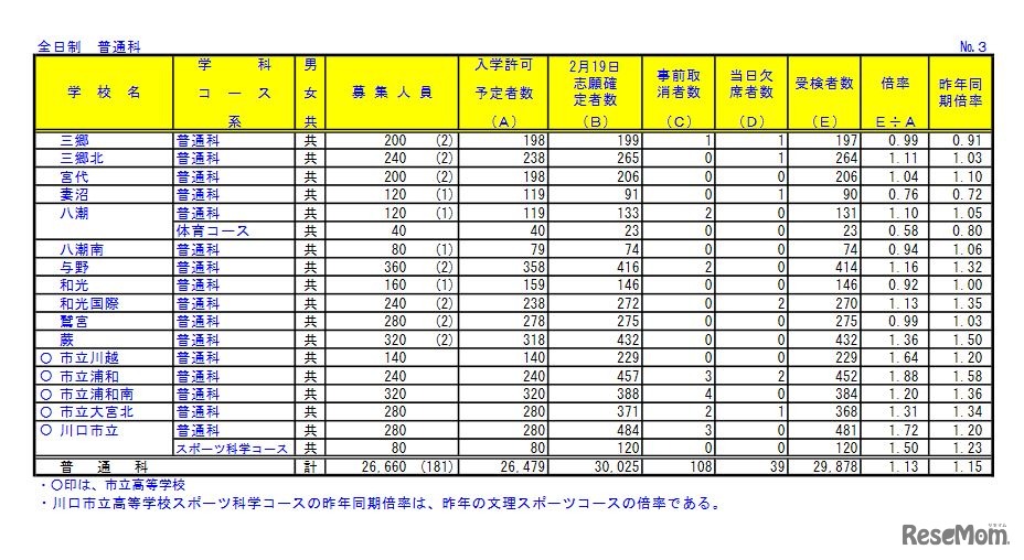 令和3年度埼玉県公立高等学校における学力検査受検状況