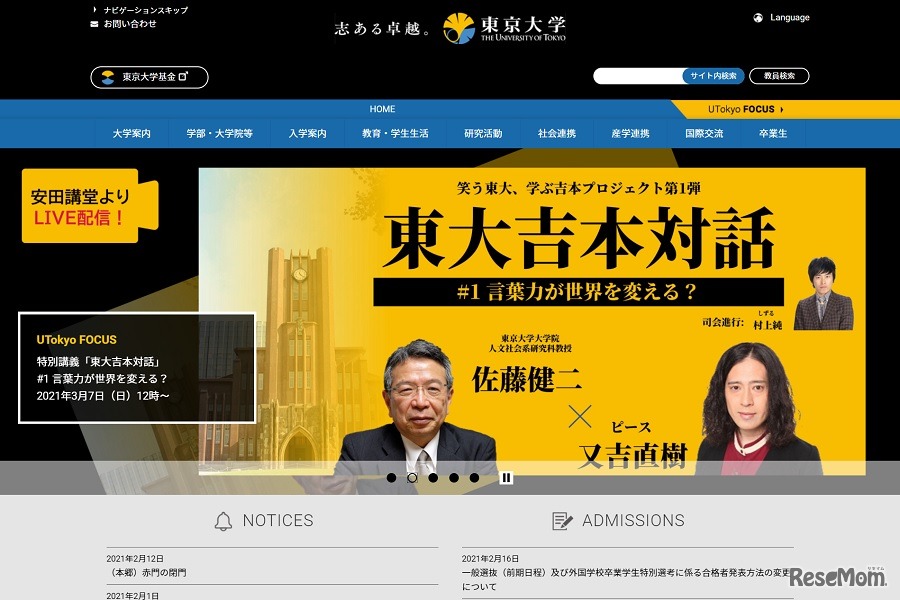 東京大学は2021年3月7日、オンライン特別講義シリーズ「東大吉本対話」をライブ配信する。東京大学大学院の佐藤健二教授と芸人のピース又吉直樹が、未来をよくするヒントを考える。参加費は無料。対象は小学生から一般。Webサイトにて視聴申込を受け付けている。