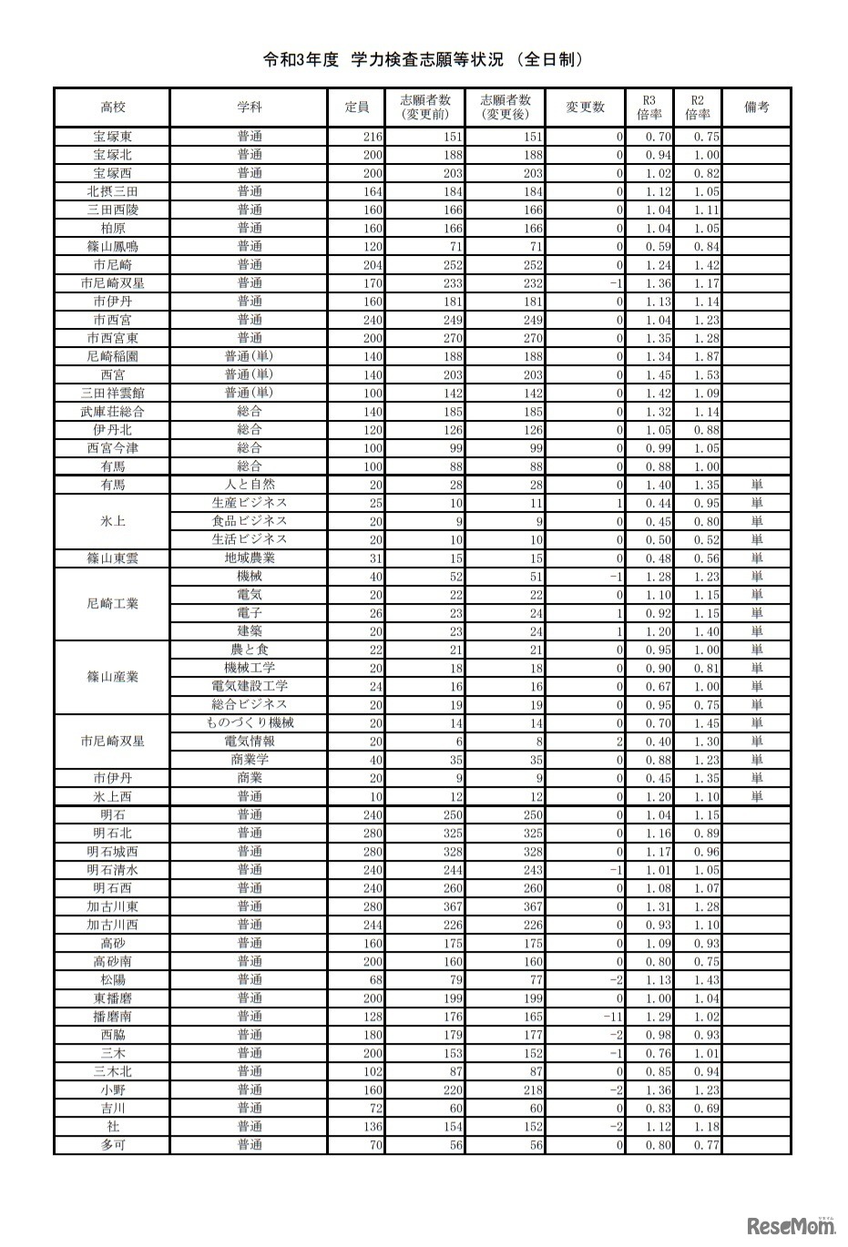 画像出典:兵庫県教育委員会 令和3年度学力検査志願等状況 (全日制)