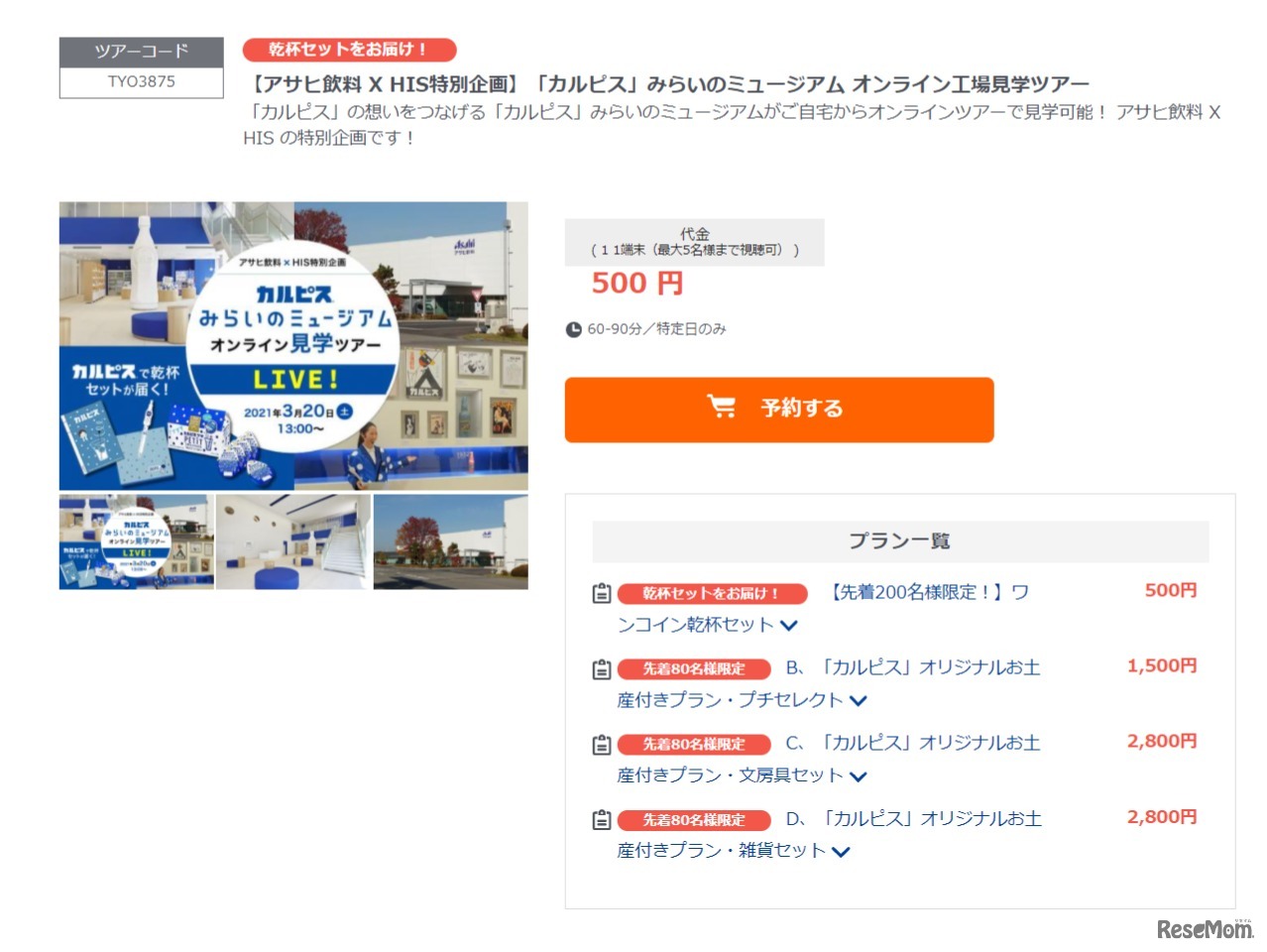 【アサヒ飲料×HIS特別企画】「カルピス」みらいのミュージアム オンライン工場見学ツアー