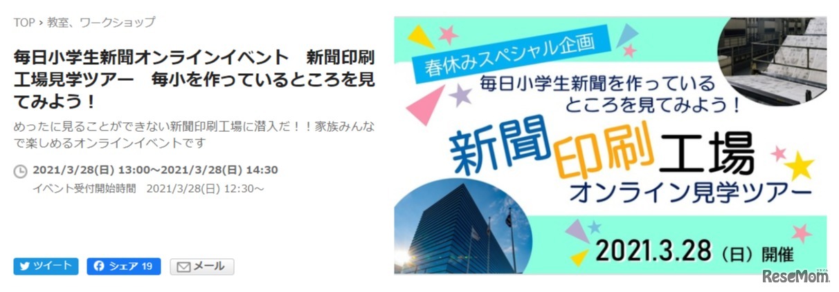 毎日小学生新聞オンラインイベント 新聞印刷工場見学ツアー 毎小を作っているところを見てみよう!