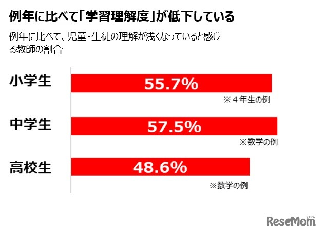 画像出典:ベネッセホールディングス 例年に比べて「学習理解度」が低下している