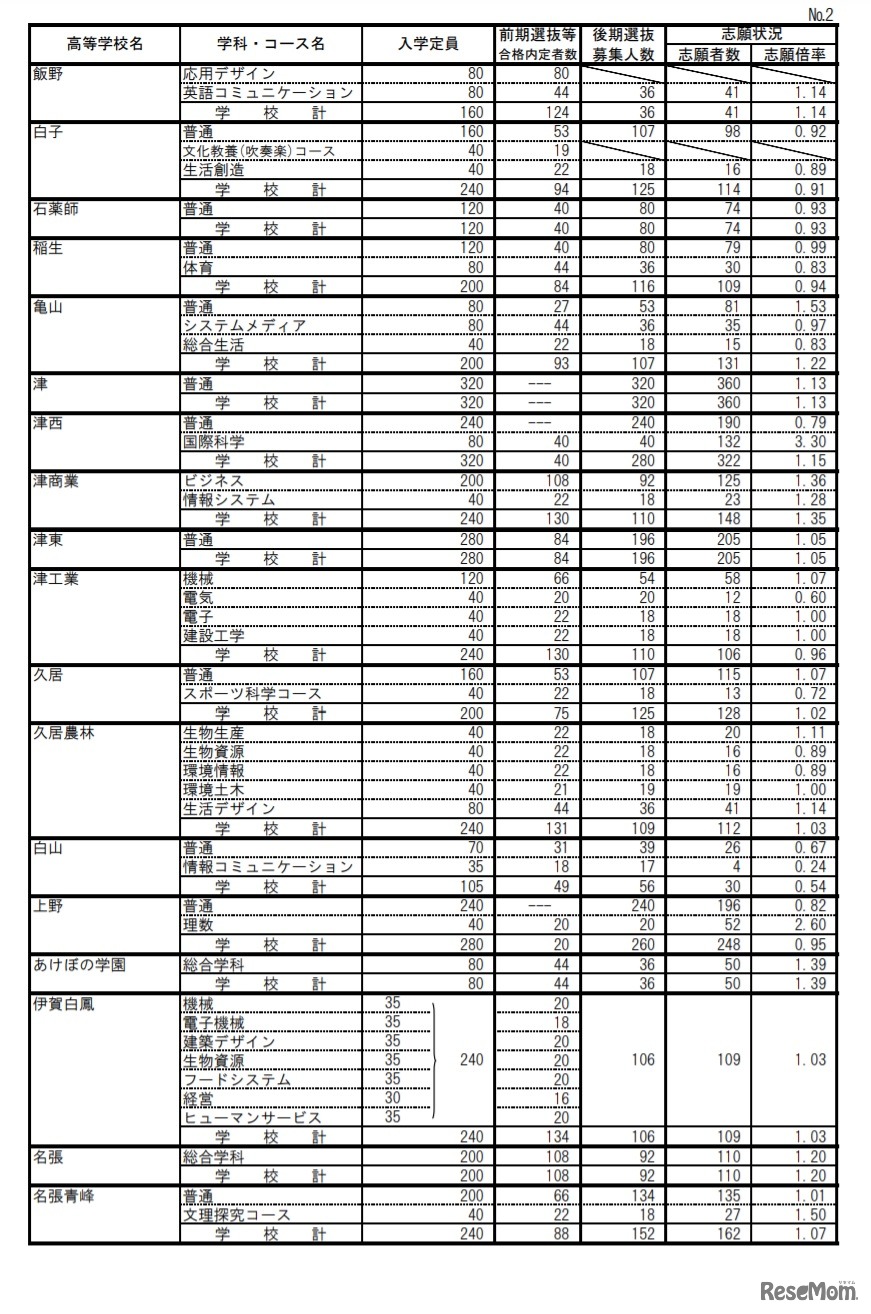 【高校受験2021】三重県立高、後期選抜の志願状況(確定)桑名(理数)3.03倍 2枚目の写真・画像