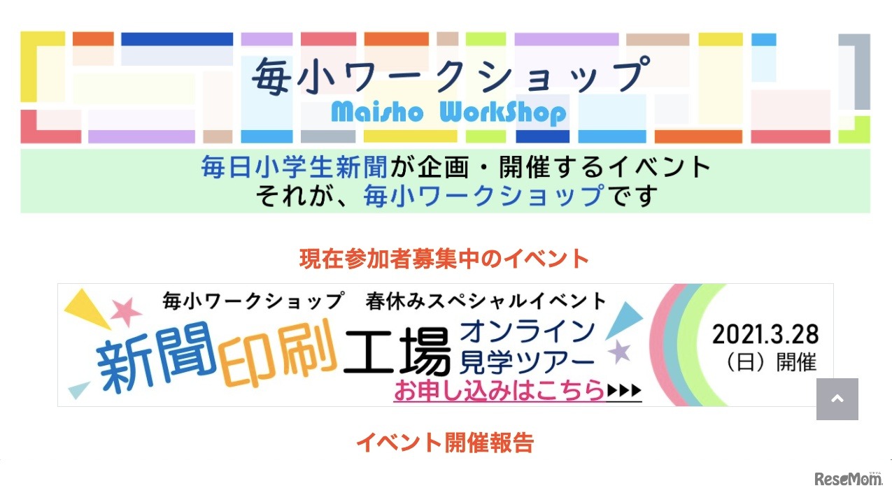 毎日新聞社は2021年3月28日、子ども向けオンラインイベント「新聞印刷工場見学ツアー!毎小を作っているところを見てみよう!」を開催する。対象は小学生とその家族、定員は先着300家族。参加費は2,200円(税込)。毎小ワークショップWebサイトで申込みを受け付けている。