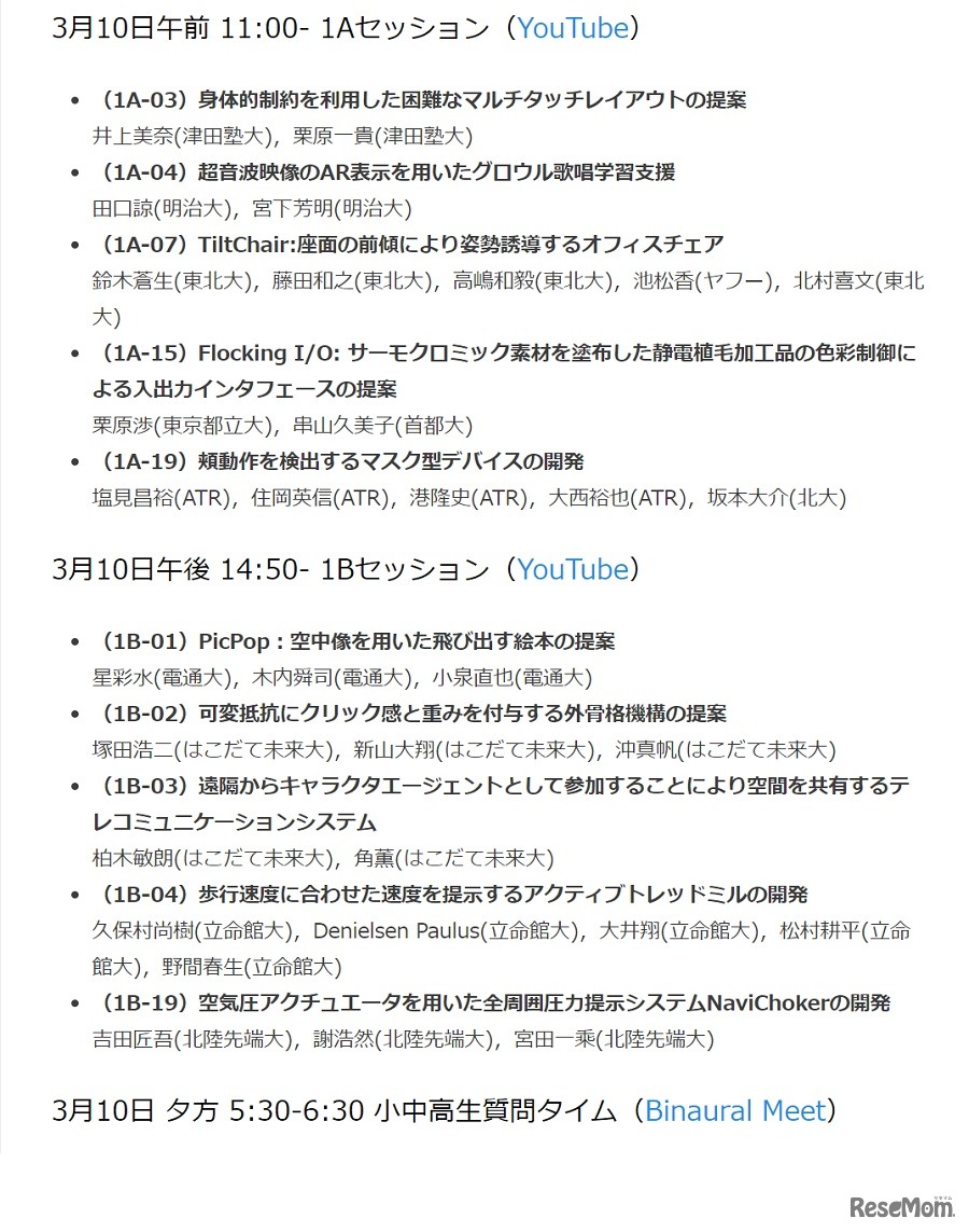 情報処理学会は2021年3月10日から12日、小中高生に向けて「情報処理学会インタラクション2021」をYouTubeでライブ配信する。視聴者が気に入った研究に、感想や意見を伝えることができるオンライン投票も実施。良いフィードバックとなった感想や意見は表彰される。