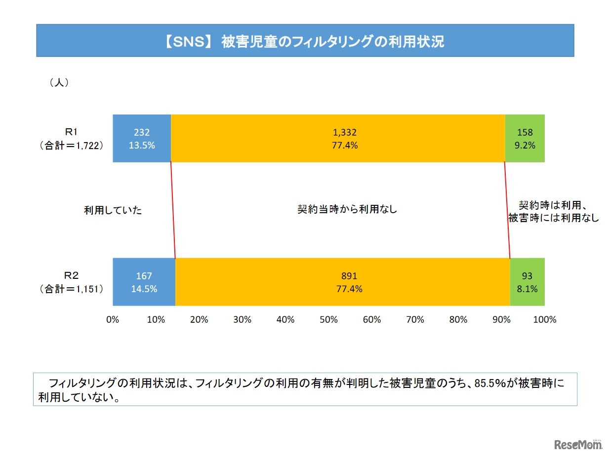 2020年(令和2年)にSNSに起因する事犯の被害を受けた18歳未満の子どもは1,819人にのぼることが2021年3月12日、警察庁の調査結果より明らかになった。被害者は中高生が9割近くにのぼり、利用したSNSは「Twitter」が全体の35.3%を占めた。