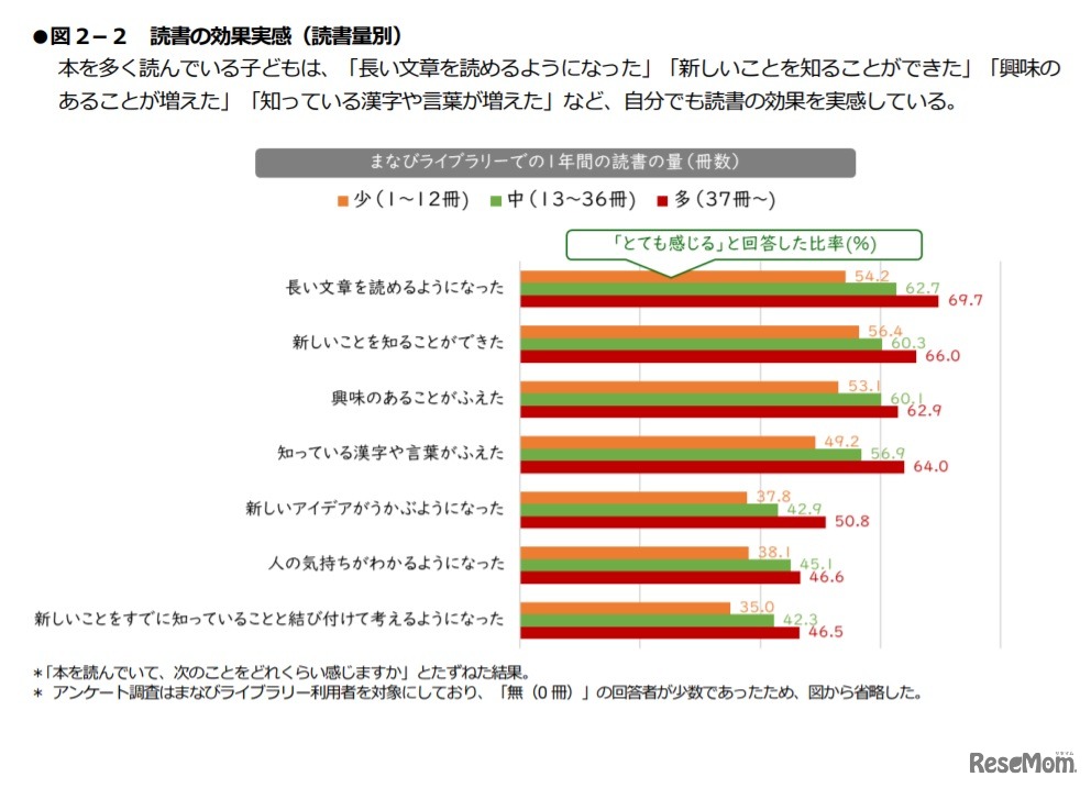 画像出典:ベネッセホールディングス 読書の効果実感(読書量別)