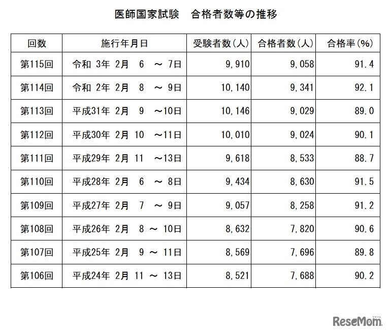 画像出典:厚生労働省 医師国家試験 合格者数等の推移