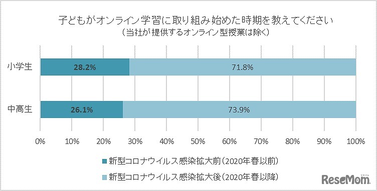 小中高生がオンライン学習に取り組み始めた時期は、新型コロナウイルス感染拡大後が7割以上であることが、増進会ホールディングスが2021年3月16日に発表した調査結果より明らかになった。