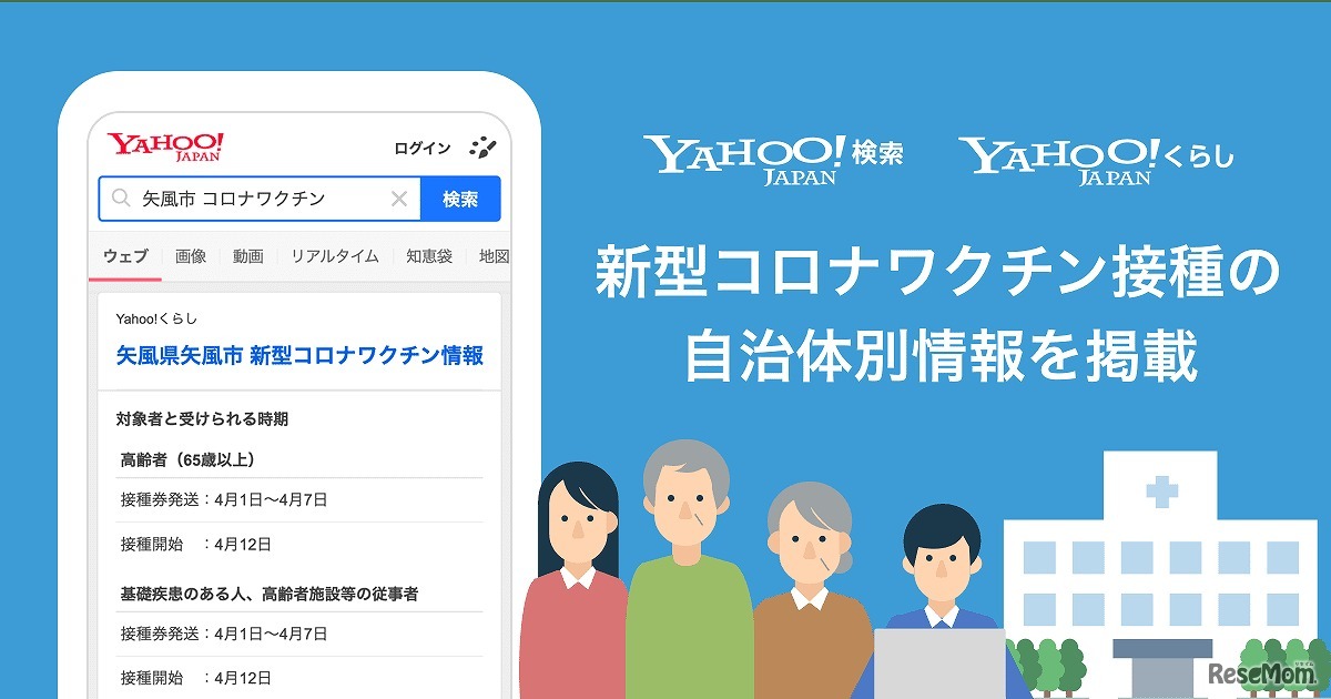 ヤフーは2021年3月16日、「Yahoo!検索」と「Yahoo!くらし」(PC版/スマートフォンWeb版)にて、約1,000自治体の新型コロナワクチン接種に関する情報の提供を開始したことを発表した。