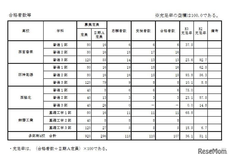 画像出典:兵庫県教育委員会 多部制II期試験Aの合格状況