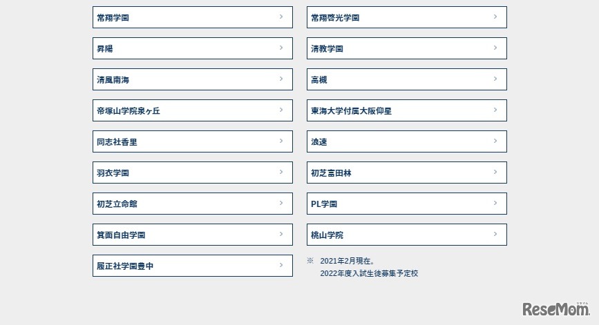 画像出典:大阪私立中学校高等学校連合会 参加予定校(共学校)