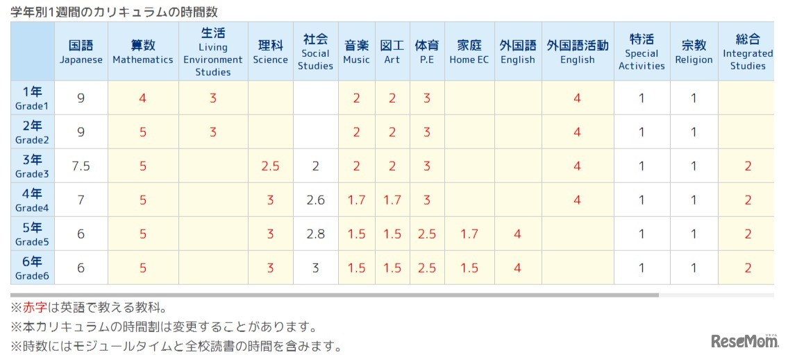 画像提供:香里ヌヴェール学院小学校 スーパーイングリッシュコースのカリキュラム