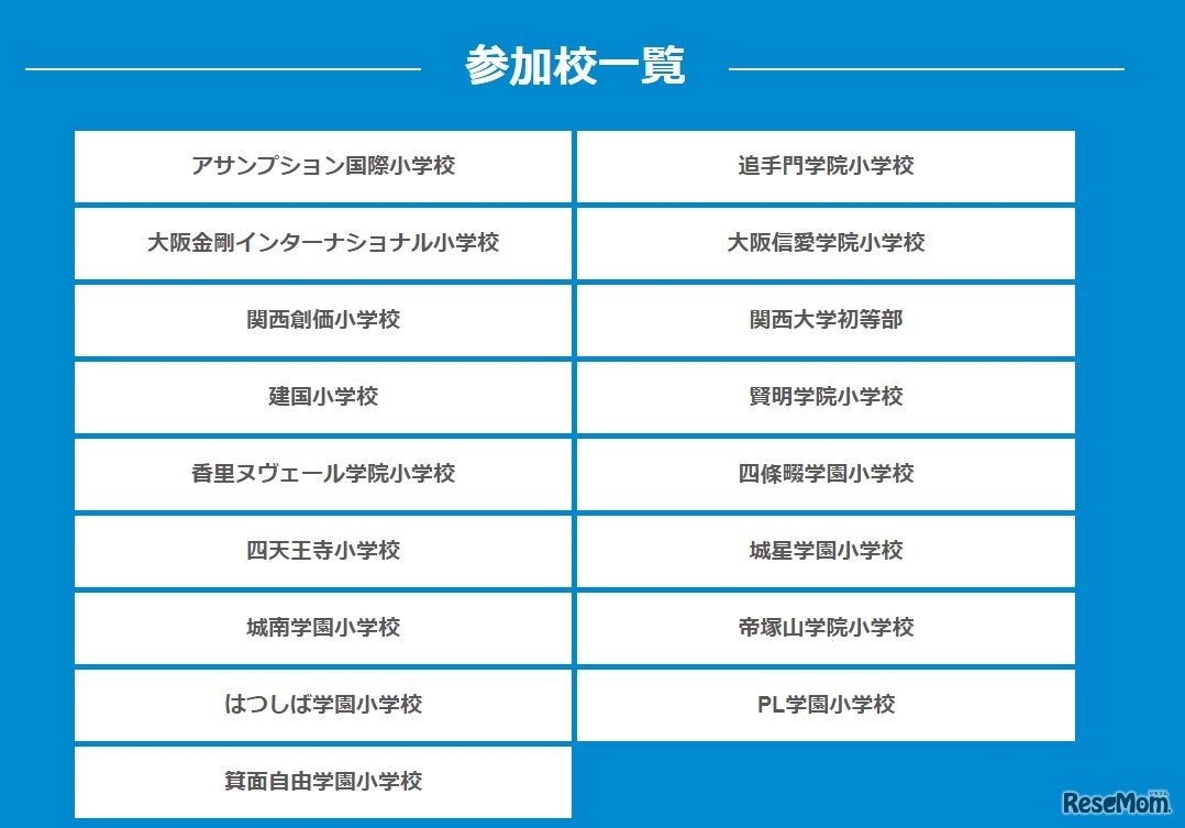 大阪府私立小学校連合会は2021年4月11日、「2021大阪私立小学校展」を開催する。追手門学院小学校、城星学園小学校など17校(2月1日現在)が参加する。完全予約制・入替制で行われる。