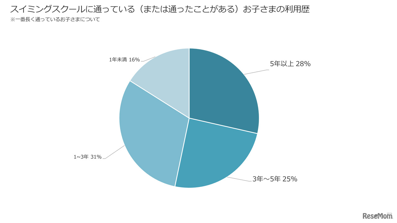 リセマムアンケート調査より スイミングスクールに通っている(または通ったことがある)お子さまの利用歴 ※一番長く通っているお子さまについて