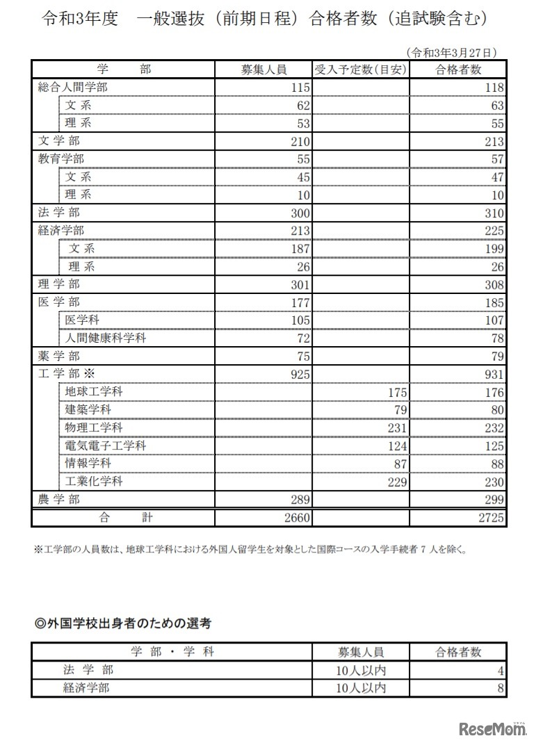 京都大学は2021年3月27日、追試験を含めた2021年度(令和3年度)一般選抜(前期日程)合格者数を発表した。学部・学科ごとの合格者数は、法学部310人、理学部308人、医学部医学科107人、薬学部79人など。