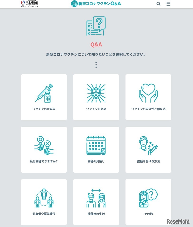 厚生労働省は、新型コロナワクチンに対する疑問や不安持つ国民に向けて、わかりやすい情報を届ける特設サイト「新型コロナワクチンQ&A」を2021年3月31日に公開した。