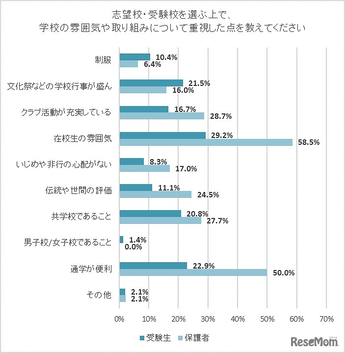 志望校・受験校を選ぶうえで、学校の雰囲気や取組みについて重視した点