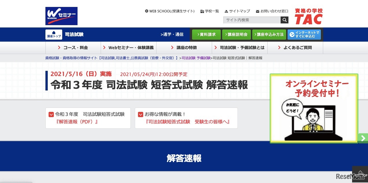 司法試験&予備試験「解答速報」5/24・20公開、TAC 2枚目の写真・画像